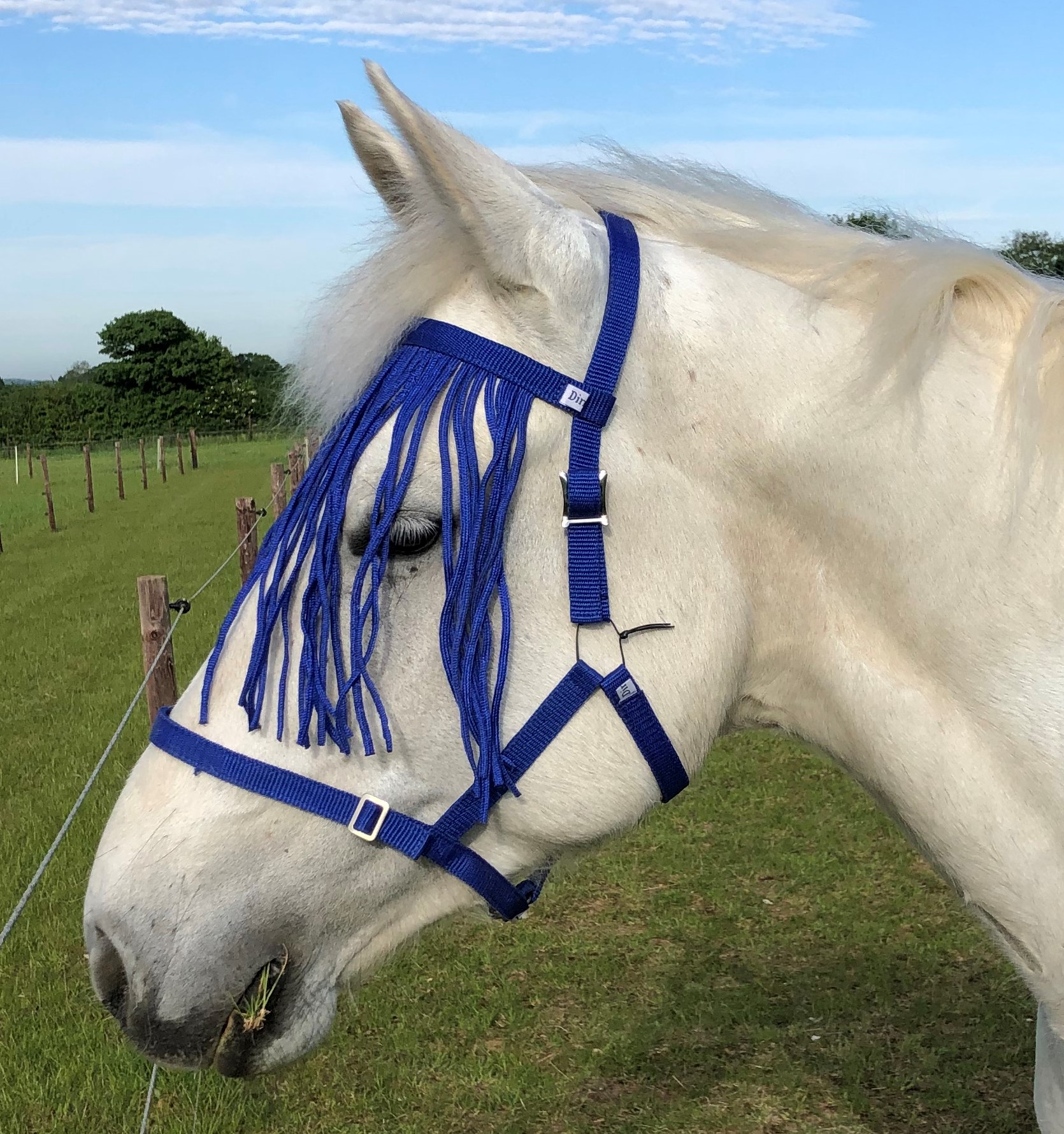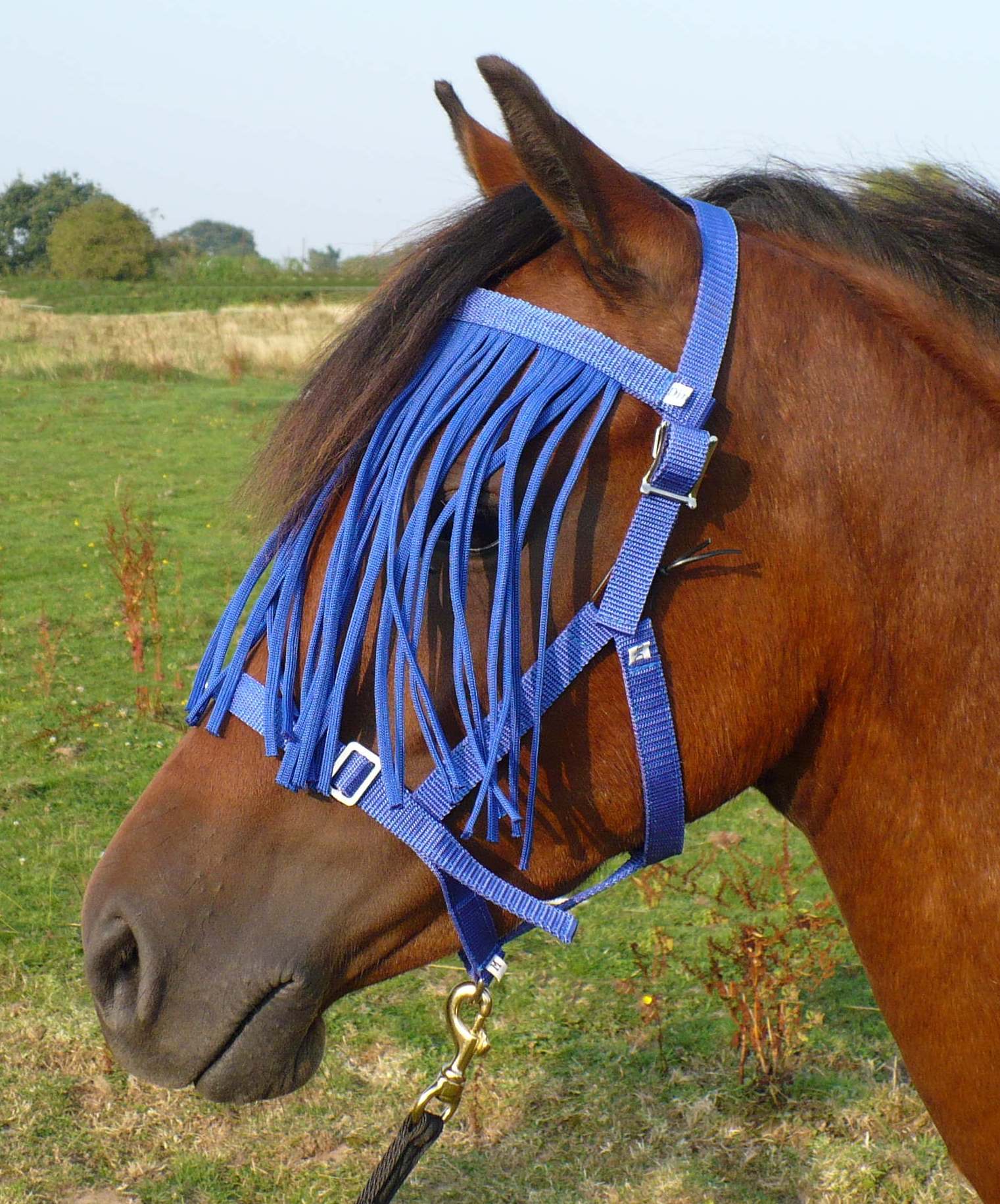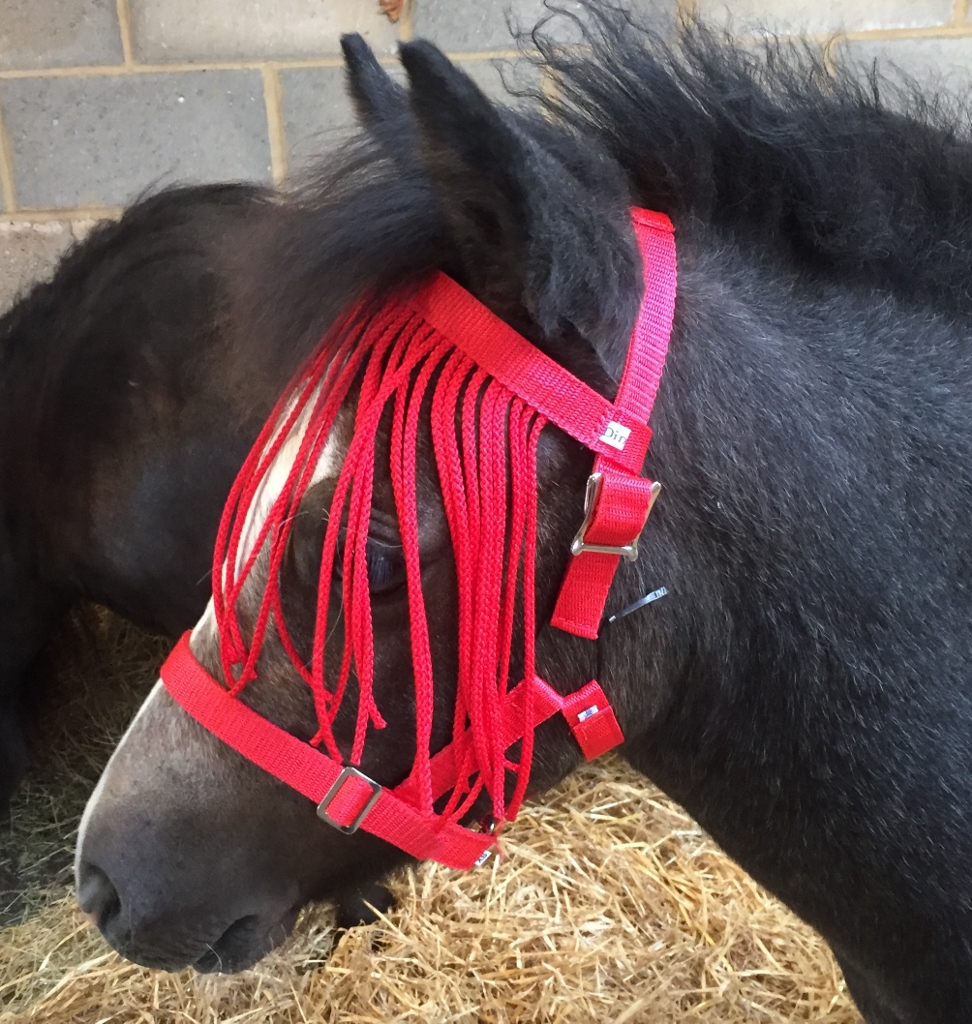 Design: Designed and made exclusively by us, this headcollar is ideal for turnout use and has a removable fly fringe. It is lightweight and comfortable and features breakable loops which are easily replaced (spare loops provided)