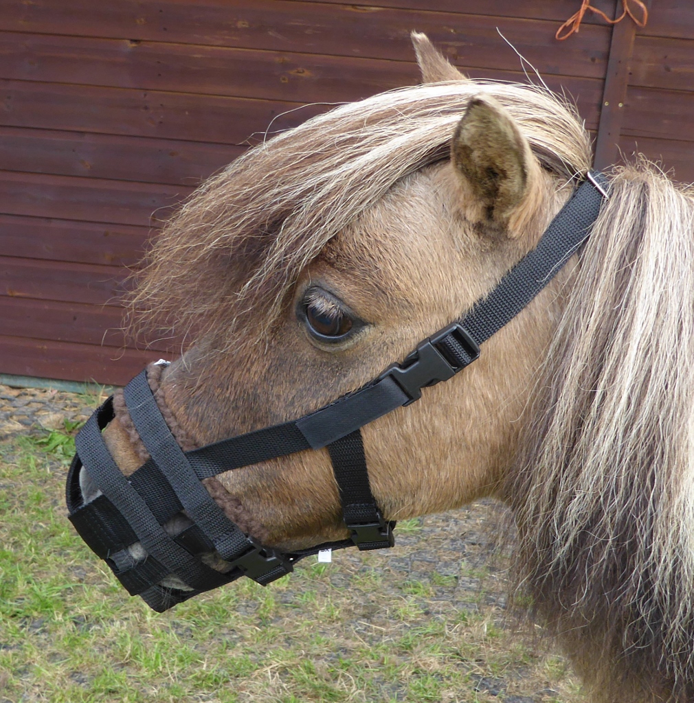 Our best selling Dinky Classic Grazing Muzzle. Available in 4 sizes to fit miniatures of around 30" high, right up to full sized horses of 17hh
