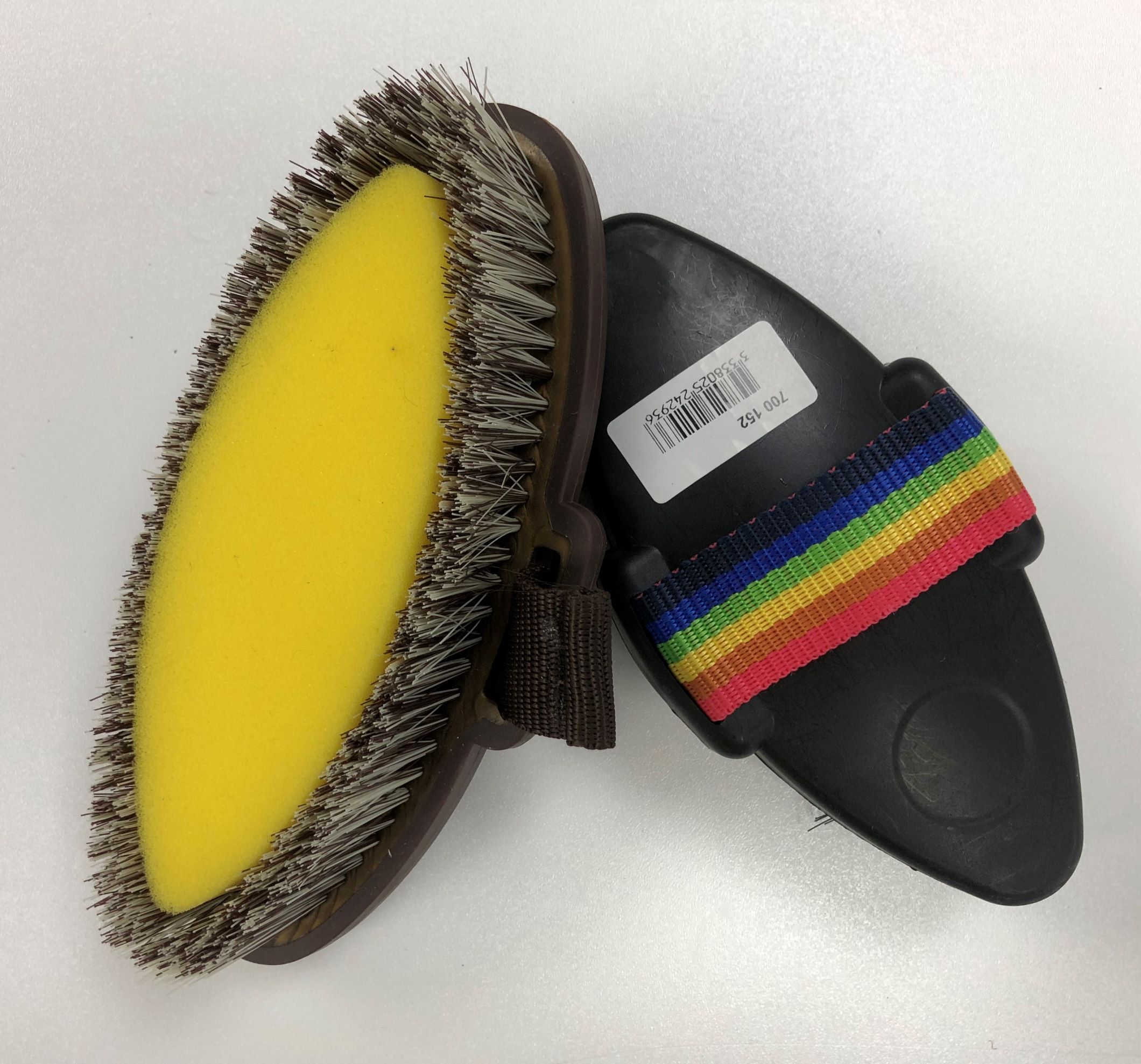 Soft bristles with a sponge centre. Perfect for washing the pony off, and for quickly removing stable stains