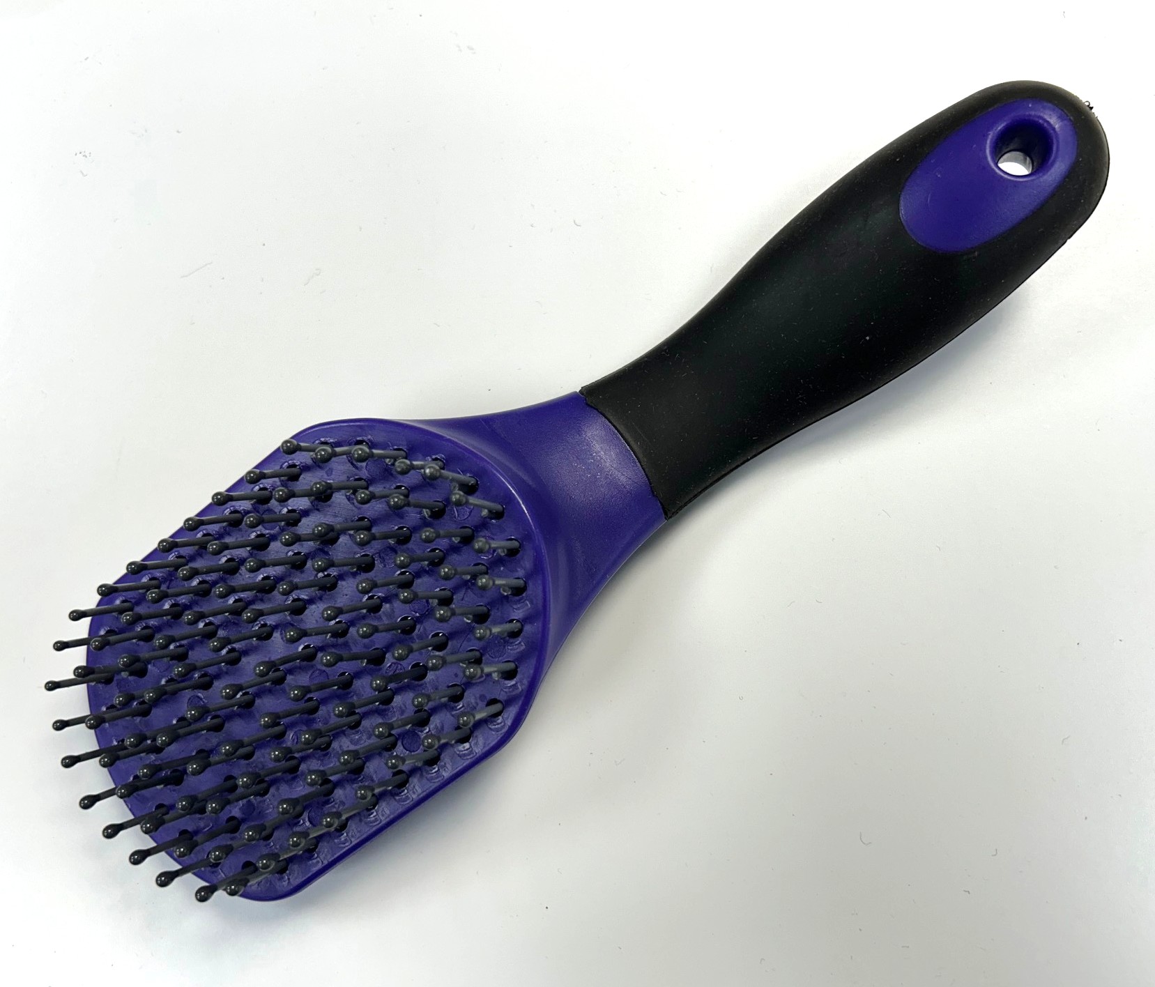 A sturdy plastic brush with rubberised handle and strong bristles. For keeping manes and tails tangle free without damaging the hair